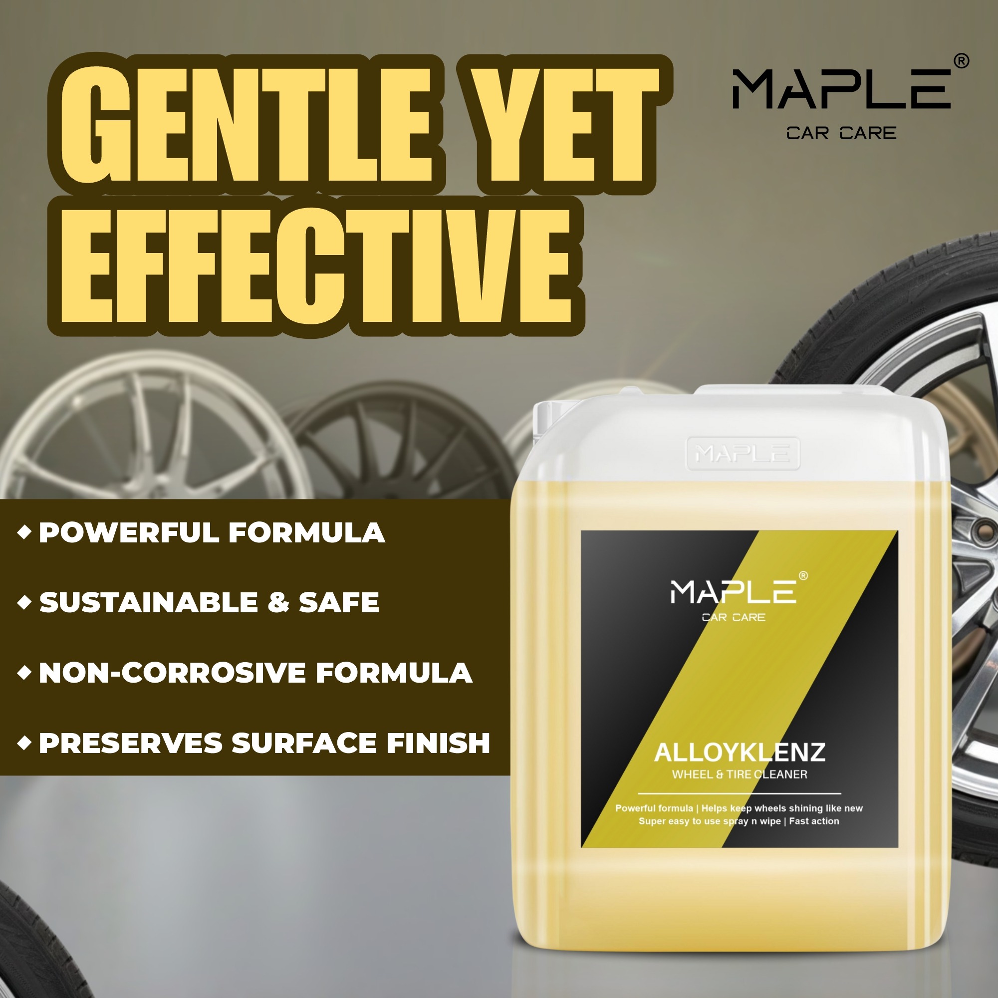 AlloyKlenz RTU is a professional-grade alloy wheel and tyre cleaning solution designed to remove stubborn contaminants from vehicle wheels and rims. Over time, alloy wheels accumulate brake dust, grease, road grime, and metallic particles that can dull their appearance. This ready-to-use cleaner works quickly to dissolve these deposits and restore the original shine of the wheels.