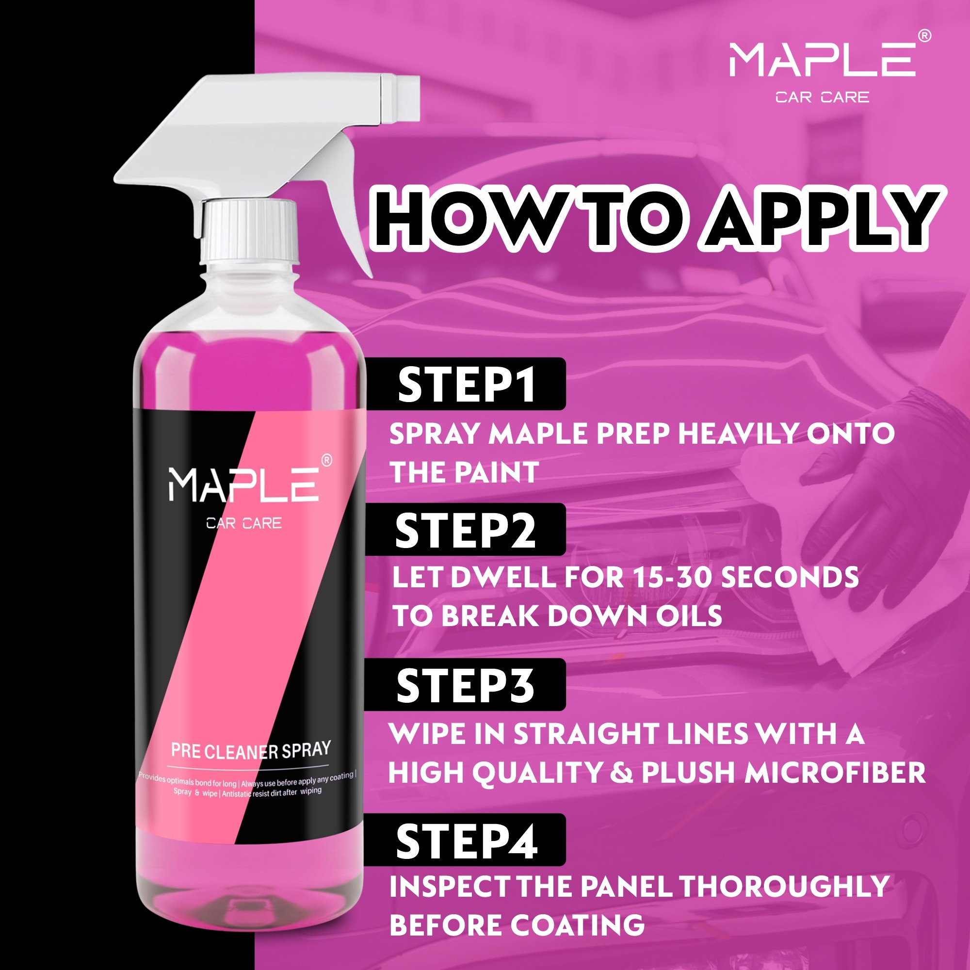 Maple Pre Cleaner Spray is an essential step before polishing or